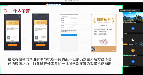 计算机技术与软件工程学院分团委书记陈澄最后总结道:“先进团支部通过‘云’展示的方式讲‘好做法’、‘好故事’,以此来提正精神、传递能量、激发活力。疫情期间,青年展现出了巨大的力量,希望青年学生可以向榜样学习,汲取成长养分,共同打赢这场没有硝烟的战‘疫’。”