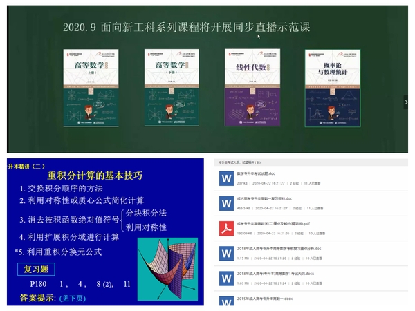 此次疫情给毕业班学生带来不小影响,计算机技术与软件工程学院在全面调研毕业班学生的需求之后,了解到有专升本意向的学生数量较大,为了助力学生备考,数学教研室组织高数课程组的资深教师,精选出一部分优质示范课资源和高数试卷的精讲视频,还组成专升本QQ群在线答疑,备考学生不仅可以自主选择学习内容,实现“量体穿衣”,还可以扩充知识量,选学感兴趣的内容。