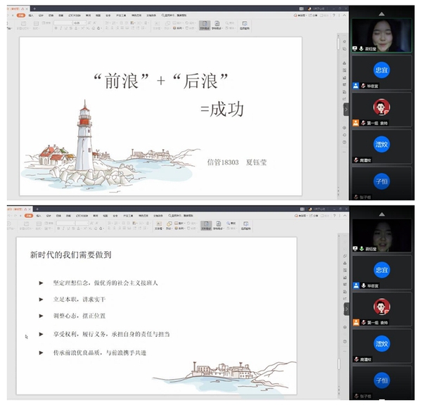 武职网讯(通讯员 彭雨)捕捉普通大学生身上的“闪光点”,让青年讲给青年听。5月14日晚7:00,计算机技术与软件工程学院第13期百生讲坛 《我们就是“后浪”!》 在“云端”如期开讲。本期讲坛邀请计算机学院3名优秀学生代表担任主讲嘉宾,通过他们的观察和见证,讲述疫情期间的学习与成长。计算机技术与软件工程学院党委副书记闫升、分团委书记陈澄、辅导员代表和300余名学生参加。