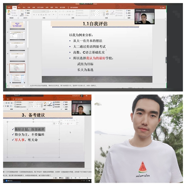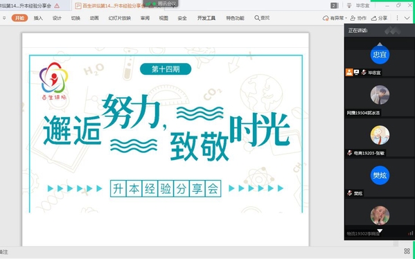 武职网讯(通讯员 彭雨)急求一份专升本“秘笈”!“上岸”学长与你面对面传经送宝,手把手点破迷津。6月7日晚,计算机技术与软件工程学院第14期百生讲坛《邂逅努力,致敬时光--升本经验交流会》在腾讯会议如期举行。本期活动邀请计算机技术与软件工程学院2名成功通过专升本考试的2019届毕业生担任主讲嘉宾,吸引了300余名学子前来“取经”。