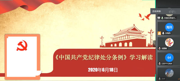(通讯员 林敏) 6月18日下午15:30,计算机软件与数学党支部开展线上主题党日活动,支部全体党员参加了此次活动,活动由支部书记宋海民主持。