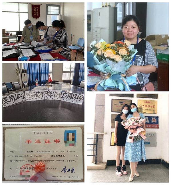 “这是你的毕业资料袋,里面有毕业证、报到证和照片,确认无误了再签名。”“行李一定要收拾好,紧要的东西要先收拾,千万别落下了。”这些天姚锟老师们说的最多的就是这两句话,声声的叮嘱,暖暖的爱意。应用17302班的张成为姚老师送上了一束美丽的鲜花,离开前还不舍地说道:“以后听不见老师的‘唠叨’,我会很想念的。”