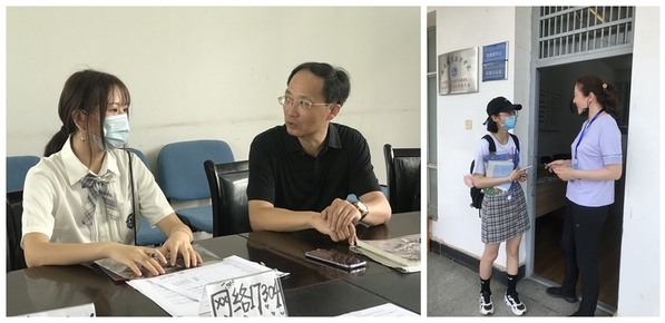 在毕业证发放现场,计算机技术与软件工程学院院长杨旭东和党委副书记闫升与毕业生亲切交谈,为毕业生送上诚挚的祝福,并热情邀请2020届毕业生在疫情之后再回学校,弥补这一场毕业季的遗憾。