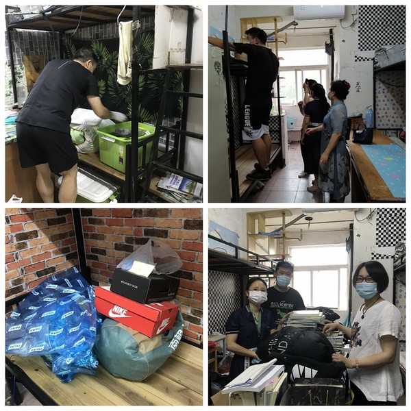 计算机学院智能18201班29名男同学全部来自新疆博州,因为路途遥远,加之当地防疫要求严格,这29名同学未能返校,毕业证和个人行李由辅导员代为寄出。7月4日上午,计算机学院党员教师和学校质管处的下沉党员一行11人来到东三宿舍,为这29名新疆籍学生逐一打包个人行李。在整个打包的过程中,老师们通过视频连线的方式,与毕业生进行一对一现场沟通交流,精准满足学生个性化需求。室外倾盆大雨,室内闷热难耐,老师们虽然衣服都湿透了,但内心却充满了力量,有老师笑着说:“今天收到了好多谢谢。”