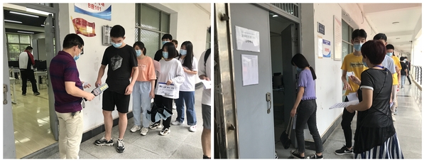 每天早上6:50,负责考场外围防疫工作的老师们就已经各就各位了,直到当天最后一场考试结束,他们坚守岗位,及时处理考生和家长的各种问题和突发状况,主动帮助有困难的学生,力求为考生提供贴心周到的服务,赢得了考生和家长的赞许。