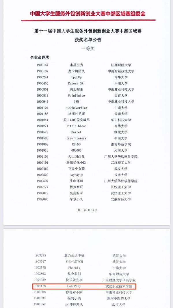武职网讯(通讯员 胡斌)7月21日,从第十一届中国大学生服务外包创新创业大赛中部区域赛(以下简称“大赛”)组委会传来喜讯,由计算机技术与软件工程学院2018级5名学子组成的ColdPlay团队在移动应用开发教研室胡斌、梁莎两位老师的指导下,首次参赛就凭借作品《GM Parkour地铁跑酷》荣获大赛一等奖并成功晋级全国总决赛。