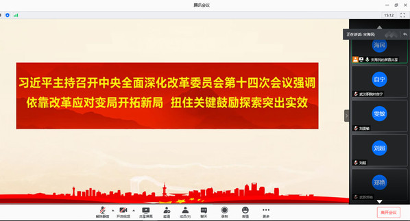 首先,宋海民领学了习近平总书记在中央全面深化改革委员会第十四次会议上的重要讲话精神。会议强调依靠改革应对变局开拓新局,扭住关键鼓励探索突出实效。深刻阐明深化改革在党和国家事业发展全局中的重要作用,为推动改革更好服务经济社会发展大局指明着力点和前进方向。