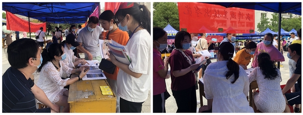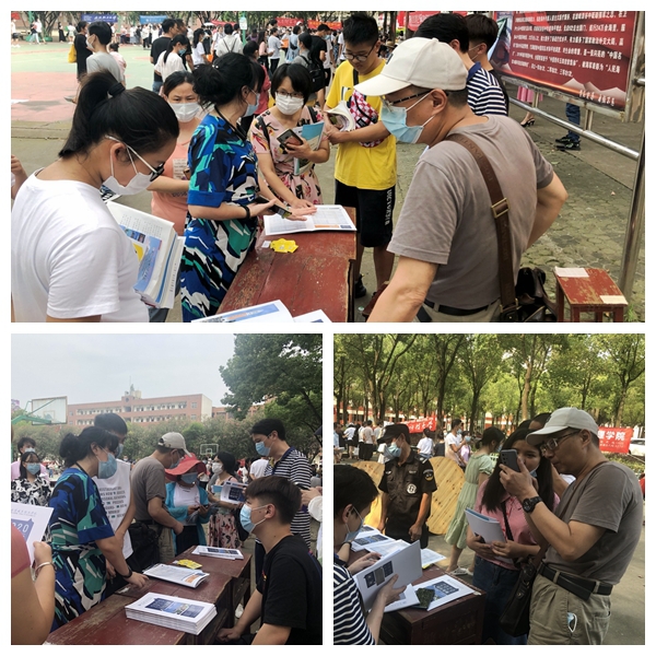 在岳口高级中学和渔薪高级中学,计算机学院的招生宣传小组因场地限制,就地取材,创意“摆摊”进行宣传。通过面对面的讲解,拉近了校、院与学生及家长的距离,让更多的学生和家长能够了解武职的招生信息。