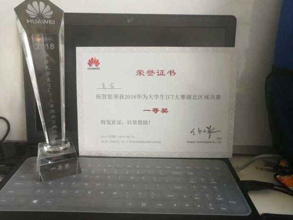 吴茜获得2018年华为大学生ICT大赛湖北赛区决赛一等奖