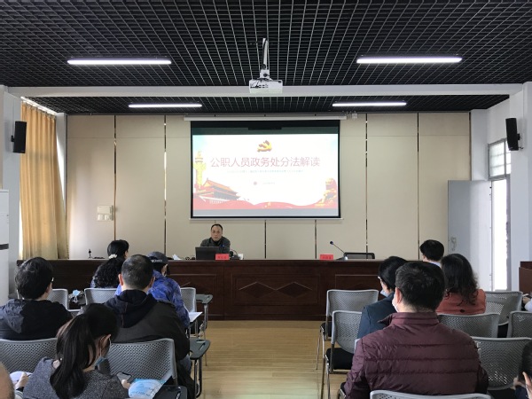会上,何让波从《中华人民共和国公职人员政务处分法》的出台背景、起草过程与基本思路、立法原则、重要意义、法则条款等方面进行了深入阐述和生动讲解。
