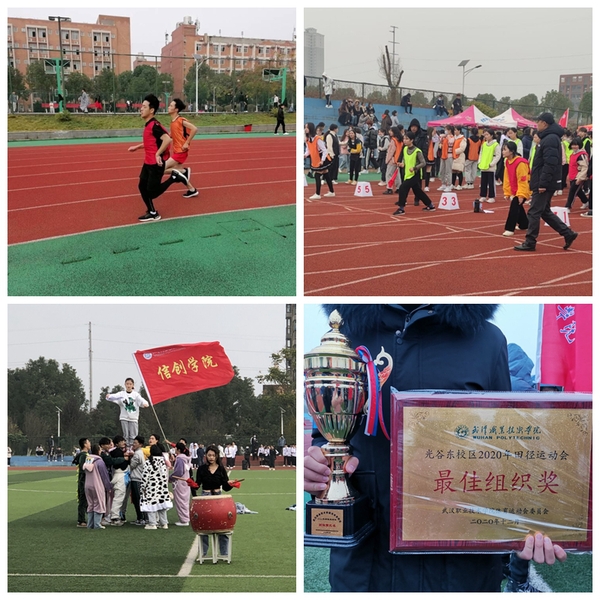 (通讯员 邵冲)青春的脚步,快如金秋之风;绽放的笑容,灿若春晓之花;激昂的鼓声,点燃青春之心。11月27日下午14点,武汉职业技术学院(光谷东校区)2020年田径运动会在校田径场隆重举行,在为期一天半的比赛中,信创学院的运动健儿们展现了良好的精神风貌和高涨的运动热情,他们在赛场上顽强拼搏,获得最佳组织奖和团体第三名的优异成绩。