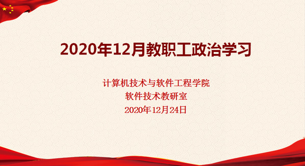 (通讯员 叶自宁) 12月24日下午,计算机学院软件技术教研室在凌峰楼A403召开12月教职工政治理论学习会。会议由软件与数学党支部书记宋海民主持,教研室全体教职工参会。