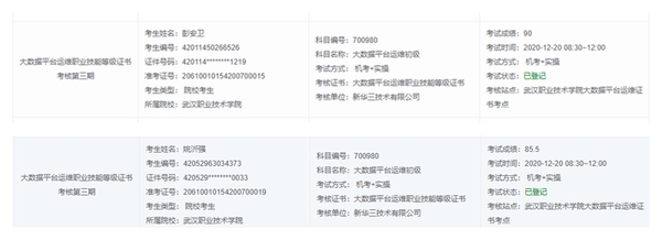 武职网讯(通讯员 刘超 摄影 叶自宁)12月26日,由武汉职业技术学院组织承办的新华三“1+X”大数据平台运维职业技能等级证书考试成绩揭晓,计算机技术与软件工程学院17名学生通过认证,通过率77%。