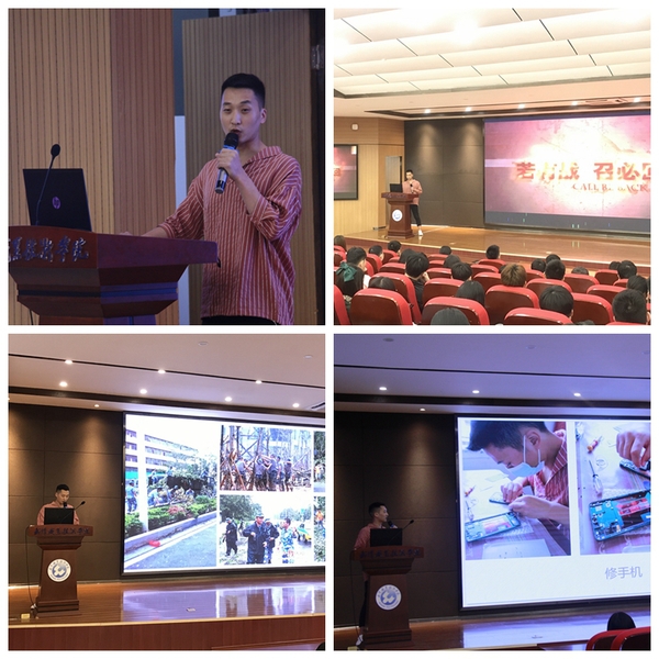 讲坛上,何东坦言,自己也曾因为游戏荒废了学业,曾感到迷茫和徘徊,经过部队的磨炼,他脱去了任性,放下了浮躁,学会了专心做事。因为兴趣爱好,他选择将程序开发作为奋斗目标,利用休息时间自学编程语言,直到可以独立制作“坦克大战”小游戏,这更加坚定了他做一名程序员的梦想。
