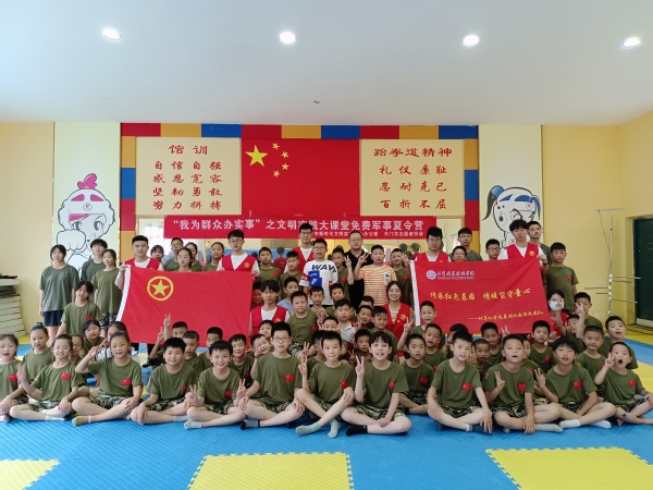 7月4日至6日,实践团队作为志愿者,参与到由天门市志愿者协会主办的“文明实践大课堂免费军事夏令营”和共青团天门市委员会主办的“团团公益课堂”的系列活动中。