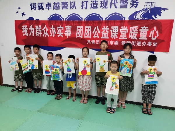 晚上,志愿者们则化身为美术教师,在“团团公益课堂”中带领留守儿童们进行美术作品的创作,丰富他们的课余生活,培养他们的兴趣爱好,用爱心与耐心温暖整个课堂。