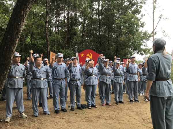 经过两个半小时的车程,党员教师到达目的地。随后,党员教师们热情高昂地换上红军装、领齐装备,完成分班建制便即刻转换角色,进入长征精神体验园,亲历红二十五军和中央红军长征的真实情景。