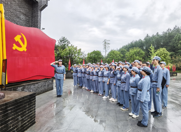 “我志愿加入中国共产党,拥护党的纲领,遵守党的章程……随时准备为党和人民牺牲一切,永不叛党。”在大别山革命历史文化陈列馆前,全体党员庄严举起右手,一字一句、铿锵有力地重温入党誓词,将共产党员的理想与信念、责任与使命铭刻在心。