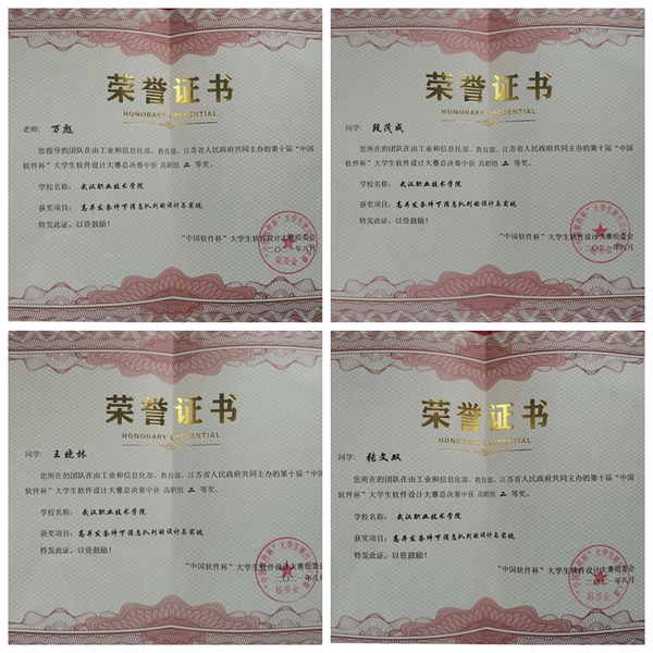 武职网讯(通讯员 刘代雄)日前,由工业和信息化部、教育部、江苏省人民政府共同主办的第十届“中国软件杯”大学生软件设计大赛总决赛在云端落幕。经过激烈角逐,武汉职业技术学院计算机技术与软件工程学院2019级学生段茂成、张文双、王晓林组成的参赛团队,从357支决赛队伍中脱颖而出,获全国二等奖。