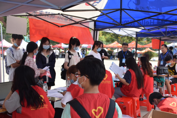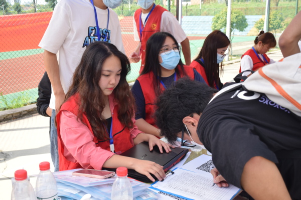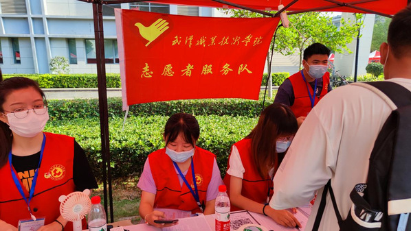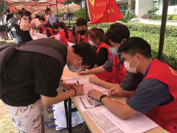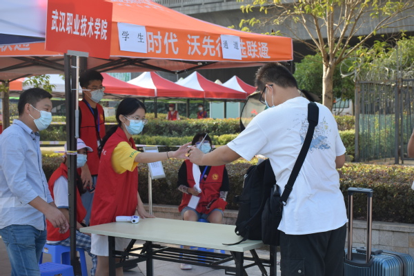 在光谷东校区,34名志愿者则是兵分两路,分别驻守在葛店南站和校内迎新点,查验绿码、指引报到、登记注册、发放资料、协助入住。志愿者们提前做足了准备工作,现场分工明确,整个报到流程高效快捷。