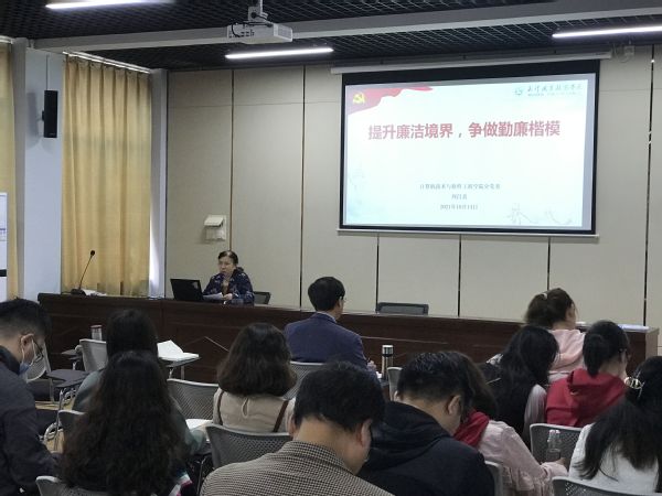刘昌喜以《提升廉洁境界,争做勤廉楷模》为题,从明代著名思想家薛瑄所著《从政录》中所述“廉洁三重境界”切入,借典故剖析“不妄取、不苟取、不敢取”的深刻内涵和现实意义。刘昌喜要求,要深刻理解薛瑄“不妄取、不苟取、不敢取”的“三不”廉洁境界的实质,对个人在思想、信仰、道德方面提出价值追求;要从党的十九届四中全会提出一体推进“不敢腐、不能腐、不想腐”的“三不”反腐体制机制中,认识在全面从严治党新形势下实现“三不”境界途径方法。她号召全体党员要加强自身修养,围绕党风廉政建设和反腐败斗争中的“三不”要求,不断升华反腐倡廉境界,永葆党员先进性,为营造一个风清气正、有利于学院各项事业发展的良好政治生态环境而不懈努力。