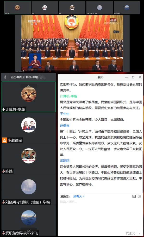 教师党支部组织支部党员通过腾讯会议一同收看“两会”开幕,并以政府工作报告内容为主线开展“大学习、大讨论”。