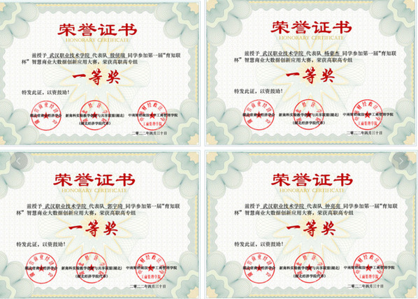 (通讯员 刘超)4月30日,2022年第一届“育知联杯”智慧商业大数据创新应用大赛总决赛在“云端”落下帷幕。计算机技术与软件工程学院与智能商务学院跨院组队,以优异表现荣获高职高专组总决赛一等奖和团体奖学金3000元。