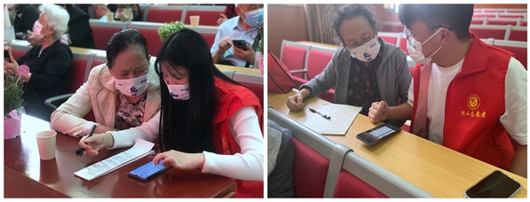 志愿者现场为老同志们解决智能软件使用问题