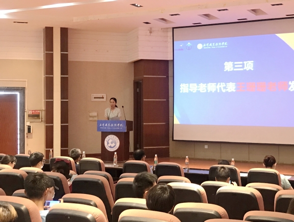 人工智能教研室骨干教师王珊珊作为指导老师代表发言,她鼓励青年学生要在大学这个美好的时间,不断尝试,找到心之所向,不断磨练提升专业技能,为将来进入社会安身立命创造技能基础,为自己圆梦,为青春喝彩。