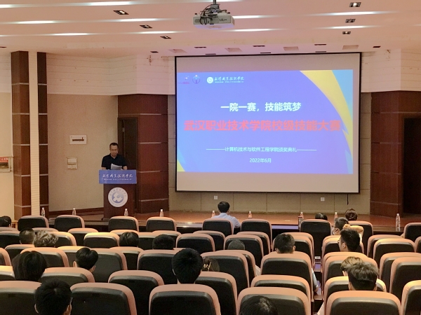 武职网讯(通讯员 王淼 李贤贞)6月9日下午,由学校教务处主办,计算机技术与软件工程学院承办的“一院一赛 技能筑梦”技能大赛计算机类赛项颁奖典礼在凌峰楼C21举行,该院分党委书记刘昌喜、院长杨旭东、分党委副书记闫升、副院长万彪、各教研室主任、骨干教师代表及21级学生代表参加颁奖典礼。