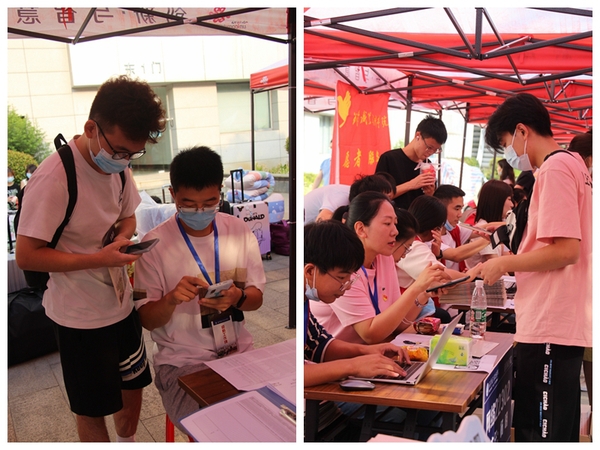 由学生预备党员、入党积极分子组成的新生班助队伍在新生报到前就已经上岗,他们在班级QQ群里耐心回答准新生们提出的各类问题,大到学校概况、专业课程介绍,小到宿舍在哪里、哪个食堂饭好吃、快递哪里取。他们还根据各自经验,告诉萌新们在报到中可能遇到的各类情况......所有的关心化作叮咛和嘱咐,惟愿学弟学妹们报到路上平安顺利。