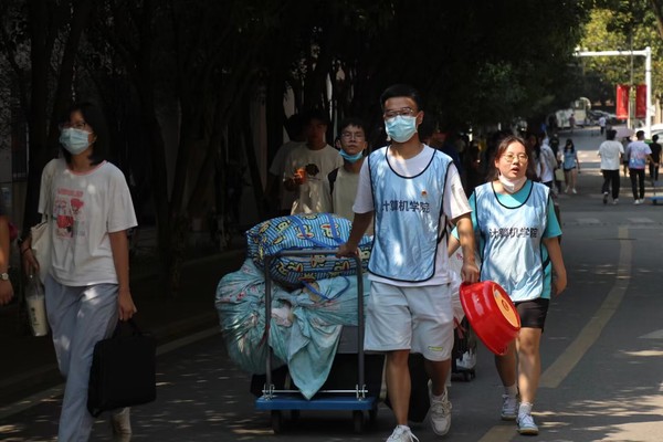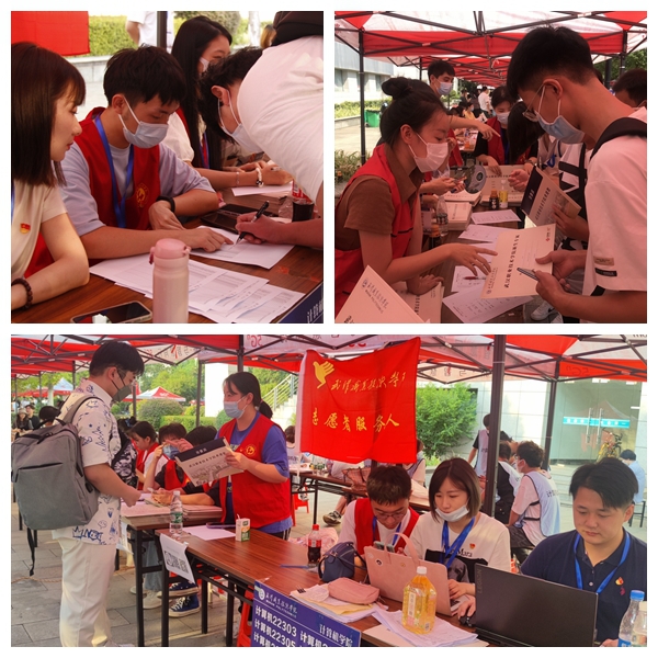 九月的武汉依旧炎热,在迎新现场,新生辅导员、班主任们简化报到流程,高效办理入学手续,减少新生的等候时间。