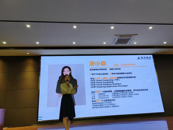 讯方公司华为认证云计算高级讲师廖小意以“奋斗的青春很美”为主题作分享,阐明目前行业发展前景及企业所需人才新标准,为在场学子探索成才之路指明了方向。