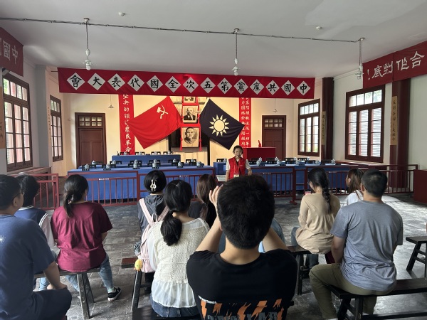 随后,师生们来到中共五大会址,朴素而庄重的“中国共产党第五次全国代表大会”横幅悬挂在上方,生动再现了中共五大开幕会场的场景。在中共五大历史陈列馆里,一张张历史图片、一件件文物珍品,述说了早年中国共产党人探索中国革命道路的艰难历程,展现了当时革命先烈艰苦的生存环境以及他们所付出的努力和牺牲。