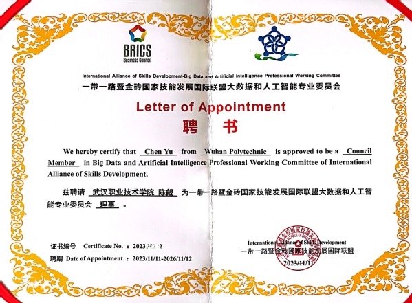 据悉,武汉职业技术学院作为金砖国家“机器学习与大数据”未来技能课程开发和国际团体标准起草工作组副组长单位2022年8月参与了标准起草制订工作。本次大会上该标准的正式发布标志着金砖国家课程开发团队在技能发展和技术创新领域的合作进一步深入。武汉职业技术学院作为副主任委员单位,将积极承担专业委员会工作任务,参与组织金砖国家国际交流、学术会议、职业技能大赛、国际团体标准制定等工作,提高国际化办学水平,共同打造大数据与人工智能领域国际化产教融合共同体。