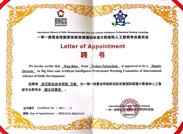 据悉,武汉职业技术学院作为金砖国家“机器学习与大数据”未来技能课程开发和国际团体标准起草工作组副组长单位自2022年8月参与了标准起草制订工作。本次大会上该标准的正式发布标志着金砖国家课程开发团队在技能发展和技术创新领域的合作进一步深入。武汉职业技术学院作为副主任委员单位,将积极承担专业委员会工作任务,参与组织金砖国家国际交流、学术会议、职业技能大赛、国际团体标准制定等工作,提高国际化办学水平,共同打造大数据与人工智能领域国际化产教融合共同体。