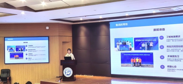 “如果大家想参加挑战杯、蓝桥杯、互联网+等各类比赛,需要具备哪些能力?做哪些准备呢?” 竺雨青的提问,激发了大家的热情。她鼓励在场大一学生积极探索,把握机会,主动拓展边界,勇于走出“舒适圈”,打破“信息茧房”,寻找志同道合的伙伴,保持积极乐观的心态,在日常学习中积累知识,在技能竞赛中提升素质。