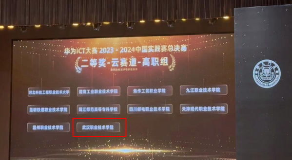 武职网讯(通讯员高源、周颖)3月31日,华为ICT大赛2023-2024中国区总决赛颁奖典礼在厦门大学举行。武汉职业技术学院代表队许源、刘博论、赵英均团队荣获“计算赛道”高职组全国一等奖并成功赢得全球总决赛通行证,将与国际顶尖队伍同台比武;易欣悦、李自韩、袁靖楠团队获“云赛道”全国二等奖。